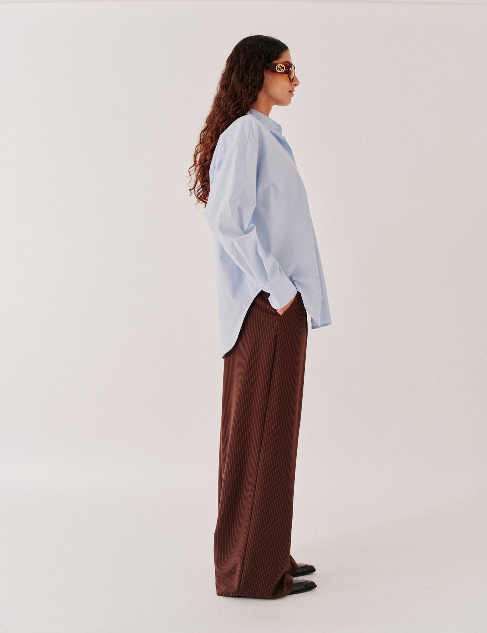 The Claire Oversized Shirt is a classic essential piece for any wardrobe. The effortless look is elevated by button detailing in the back and allows you to customize the look to your preferences.