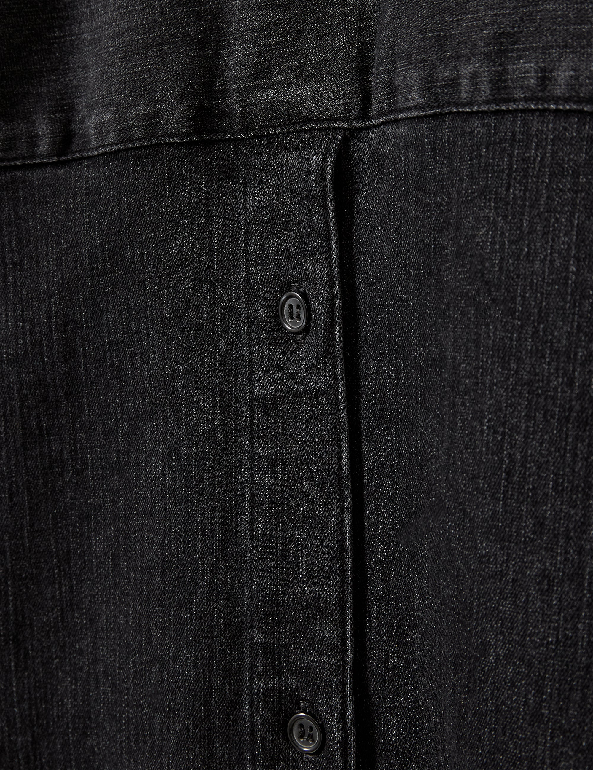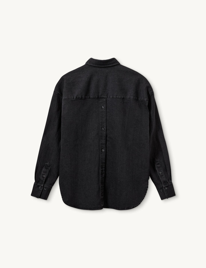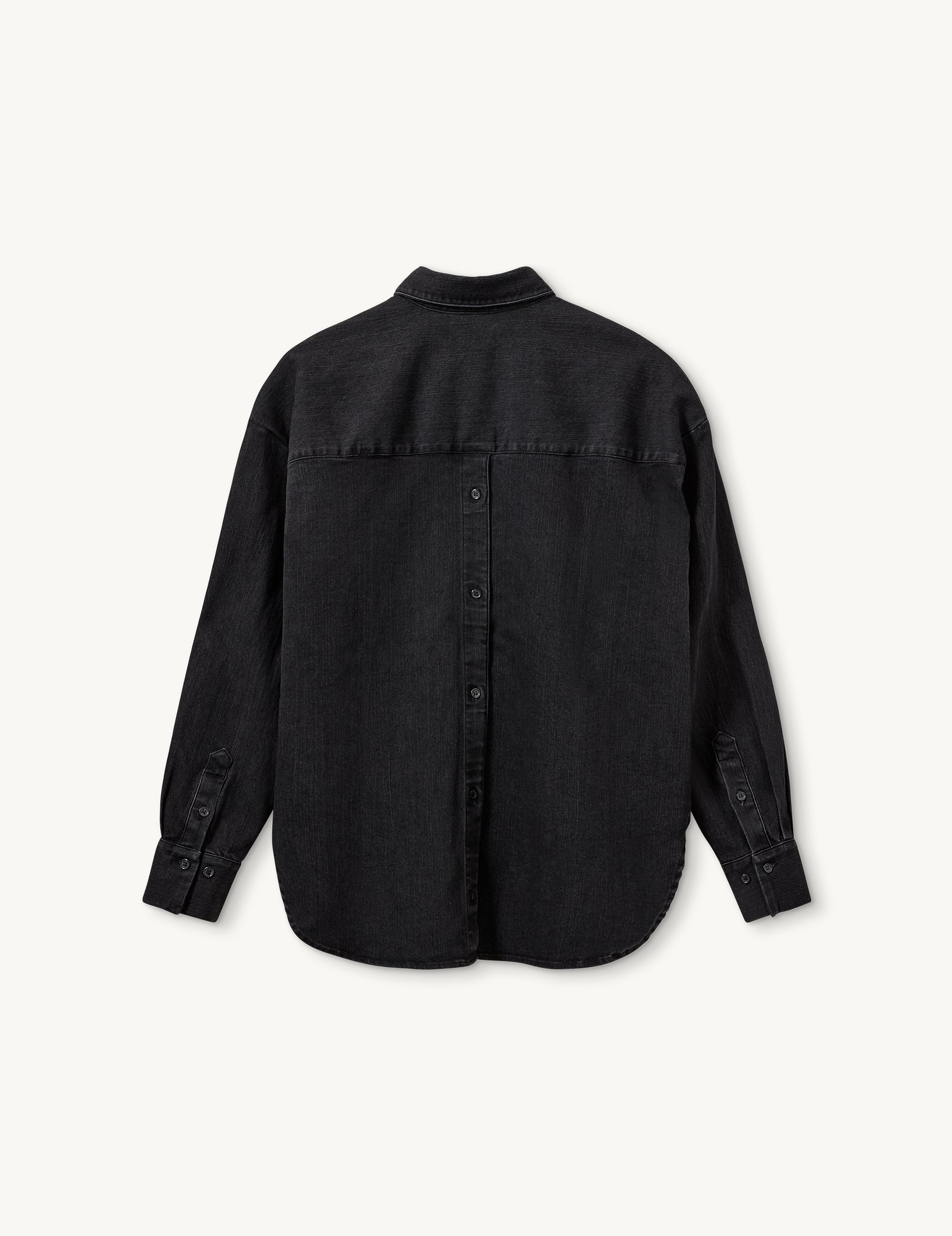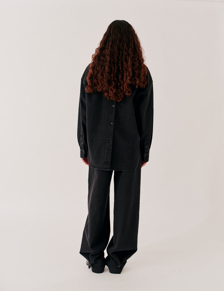 Effortlessly modern. The Merrit Oversized Shirt is cut in stretch denim with a relaxed fit and subtle back button detail—designed to pair perfectly with the matching Barrel Pants.