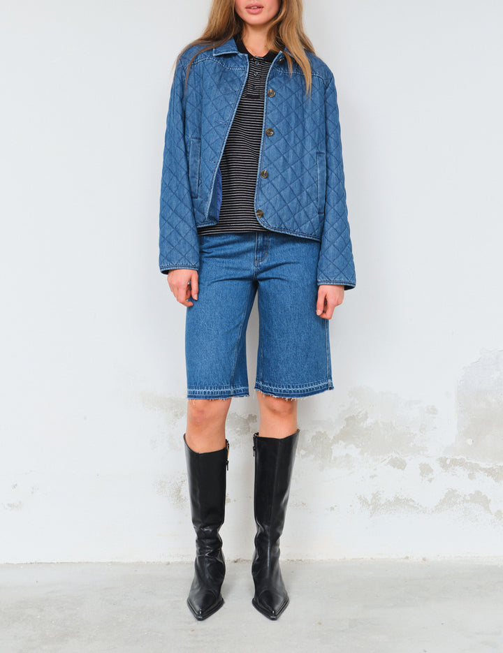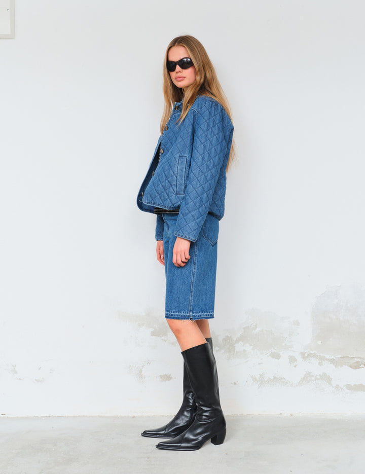 Utility meets laid-back cool in the Miles Board Shorts, crafted from soft, stone-washed denim for a worn-in feel. Designed with a relaxed fit and mid-thigh length, an efortless go-to for warmer days. Style them with oversized shirts or sharo tailoring for a contrast of casual and clean.