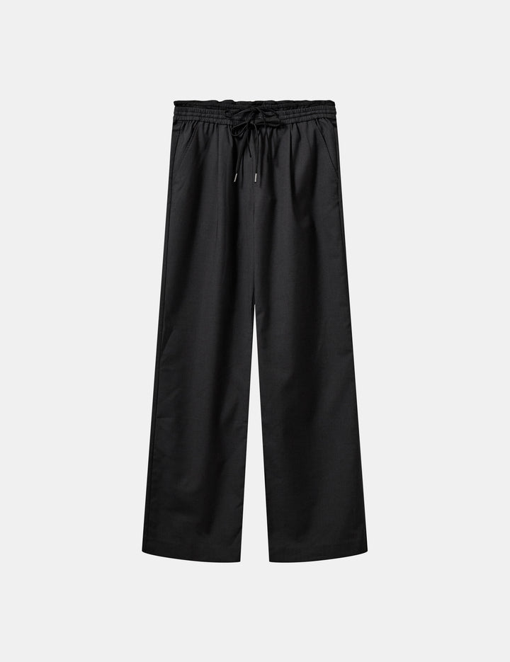 Where tailoring meets relaxed utility—the Steven Drawstring Contrast Pants are cut from a soft, dark grey melange suiting fabric and finished with a tonal drawstring waist for a refined yet casual attitude. Designed for ease without compromise, these pants pair perfectly with a tank top or a slouchy knit.