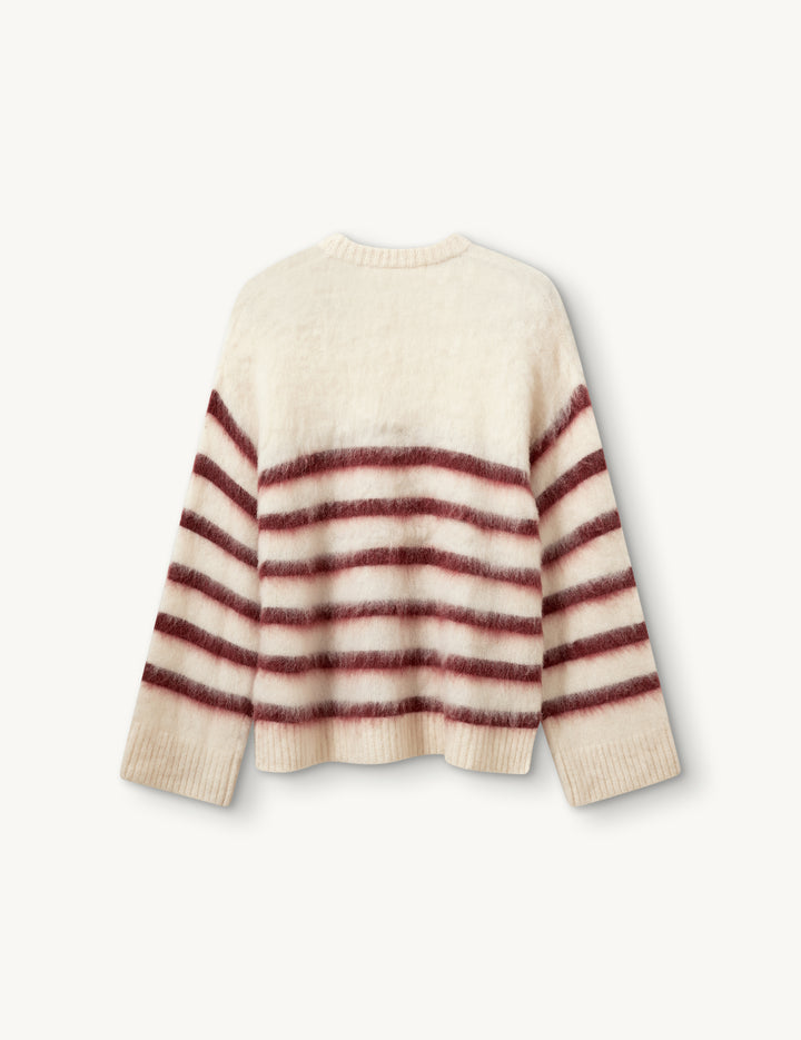 Verona Brushed Stripe Sweater Cream/Burgundy Stripes