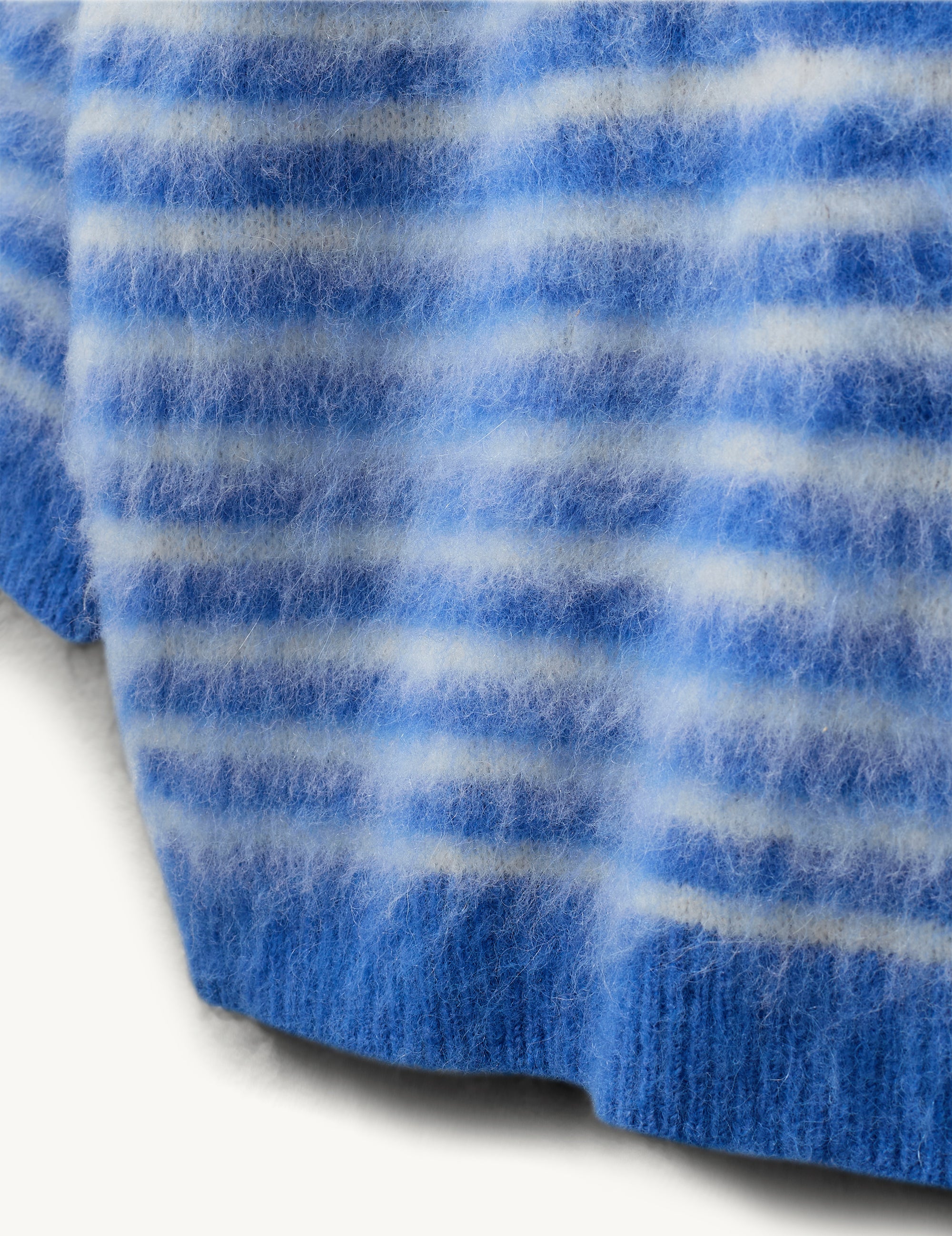 The Verona Brushed Stripe Tee is crafted from a soft alpaca-wool blend, offering featherlight warmth and a gently brushed finish. Its relaxed silhouette and classic stripe pattern—available in multiple colorways—make it a versatile foundation for both layering and solo styling. Pair it with the coordinating Verona pieces for a tonal look, or mix it into your everyday rotation for a touch of quiet texture.
