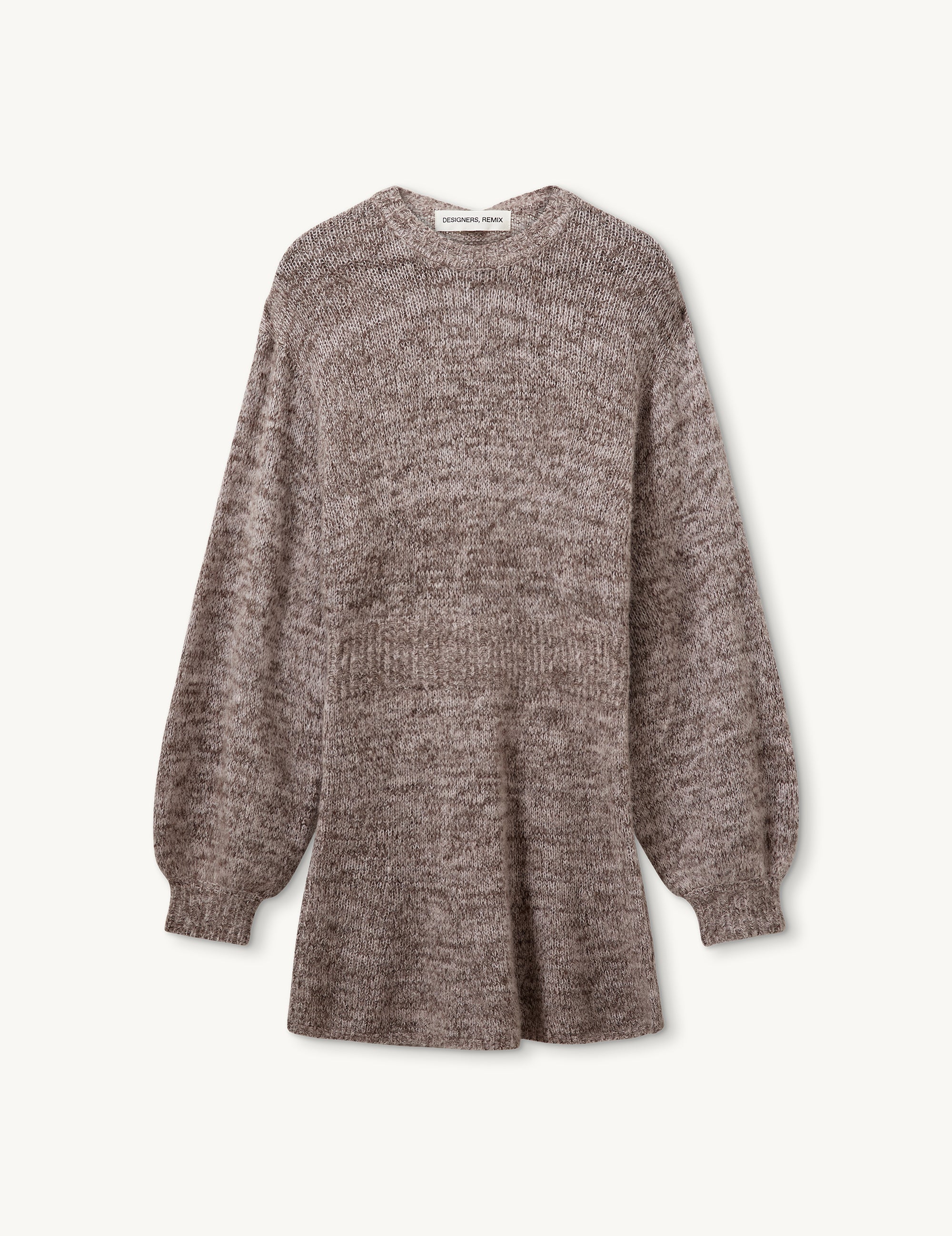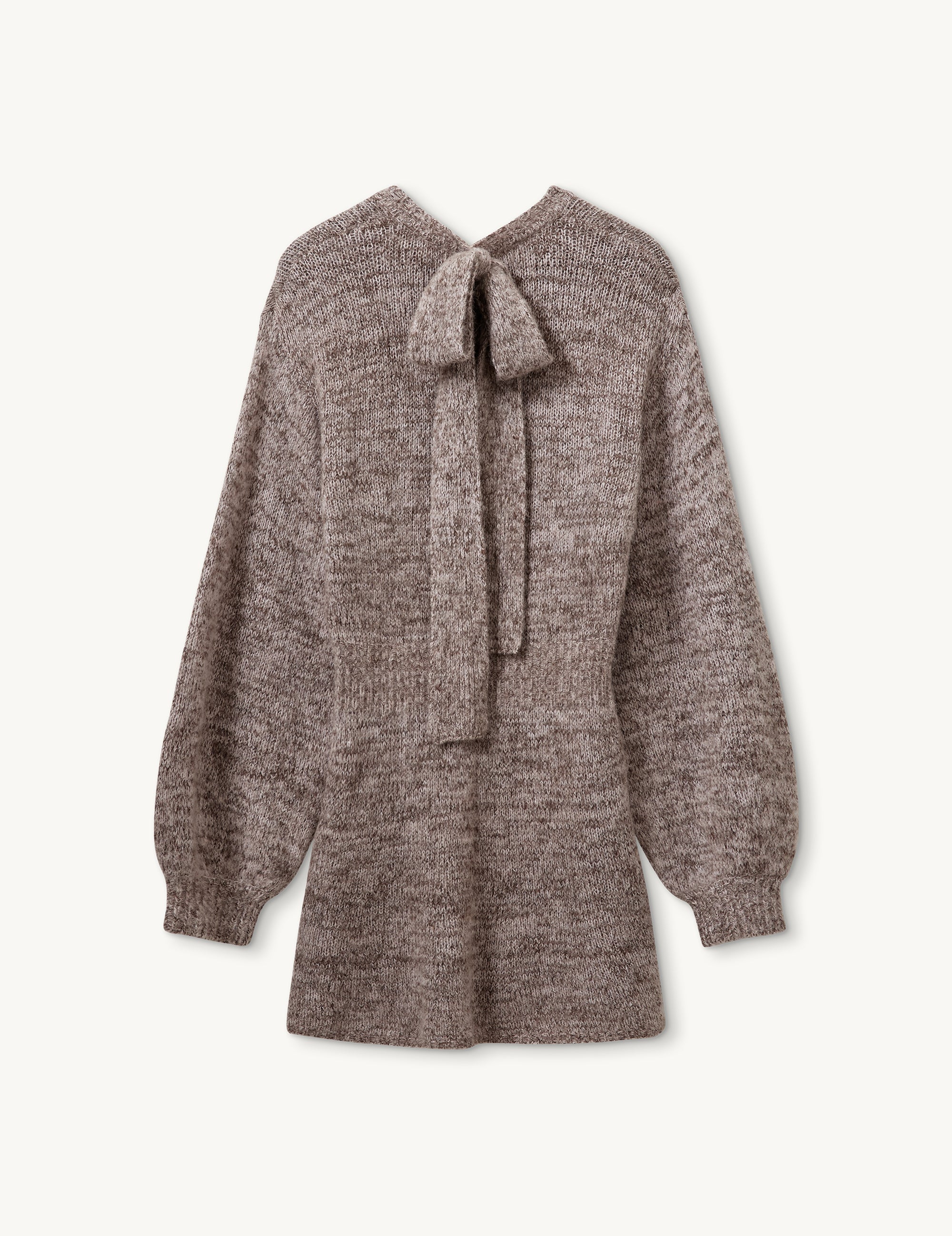 Effortless elegance. The Verona Scarf Short Dress features a boxy A-line knit silhouette with a slim scarf detail, crafted from a cozy alpaca wool blend.