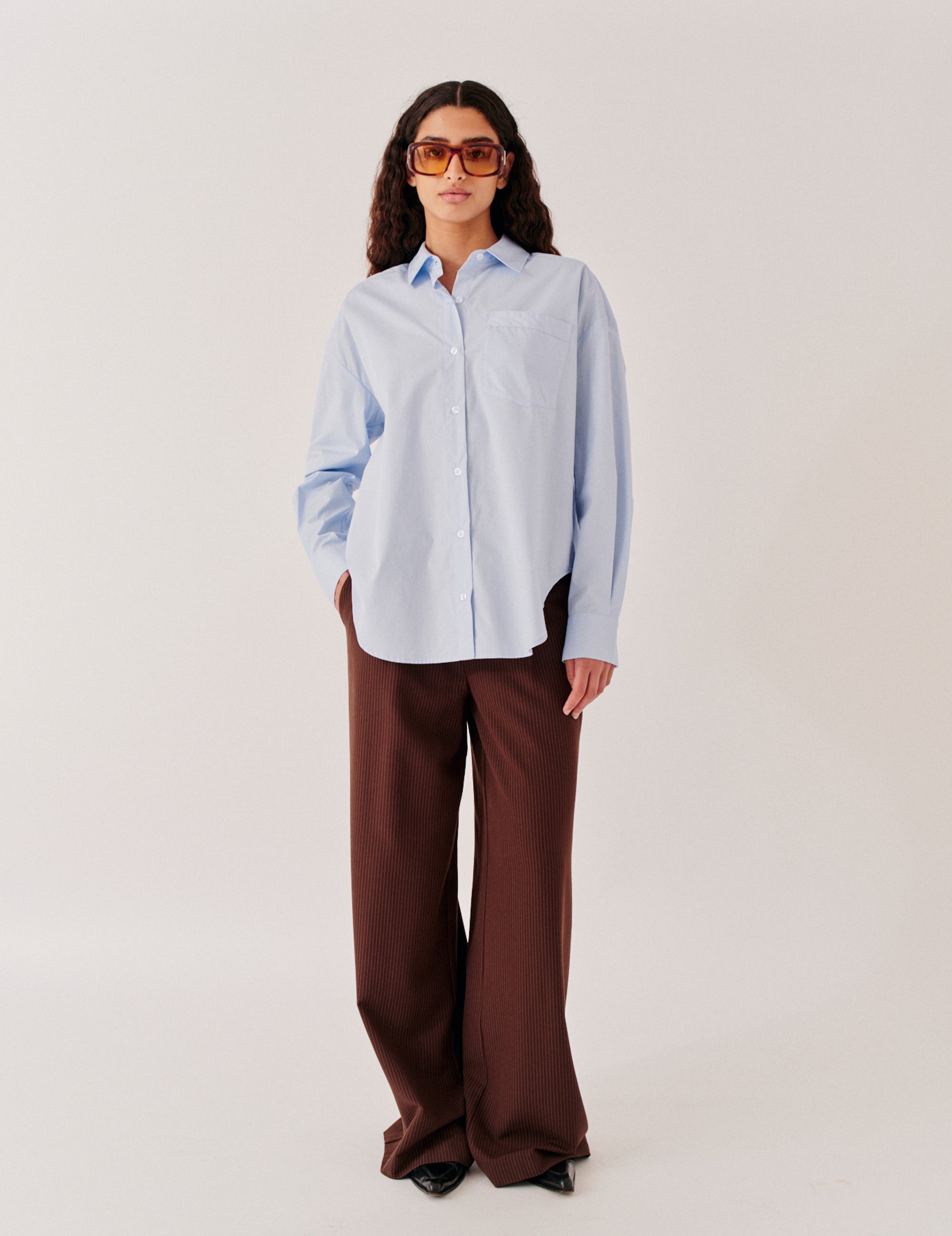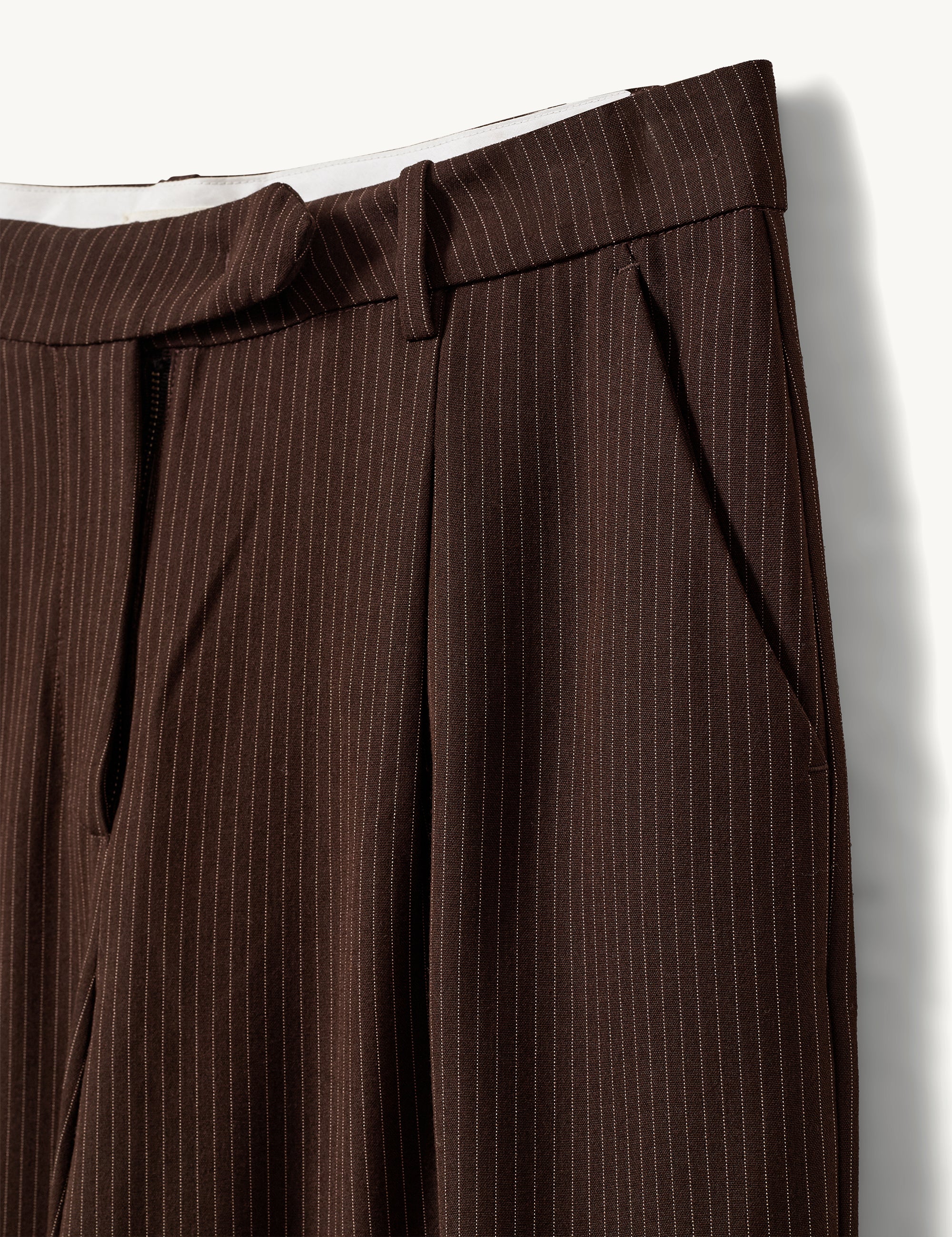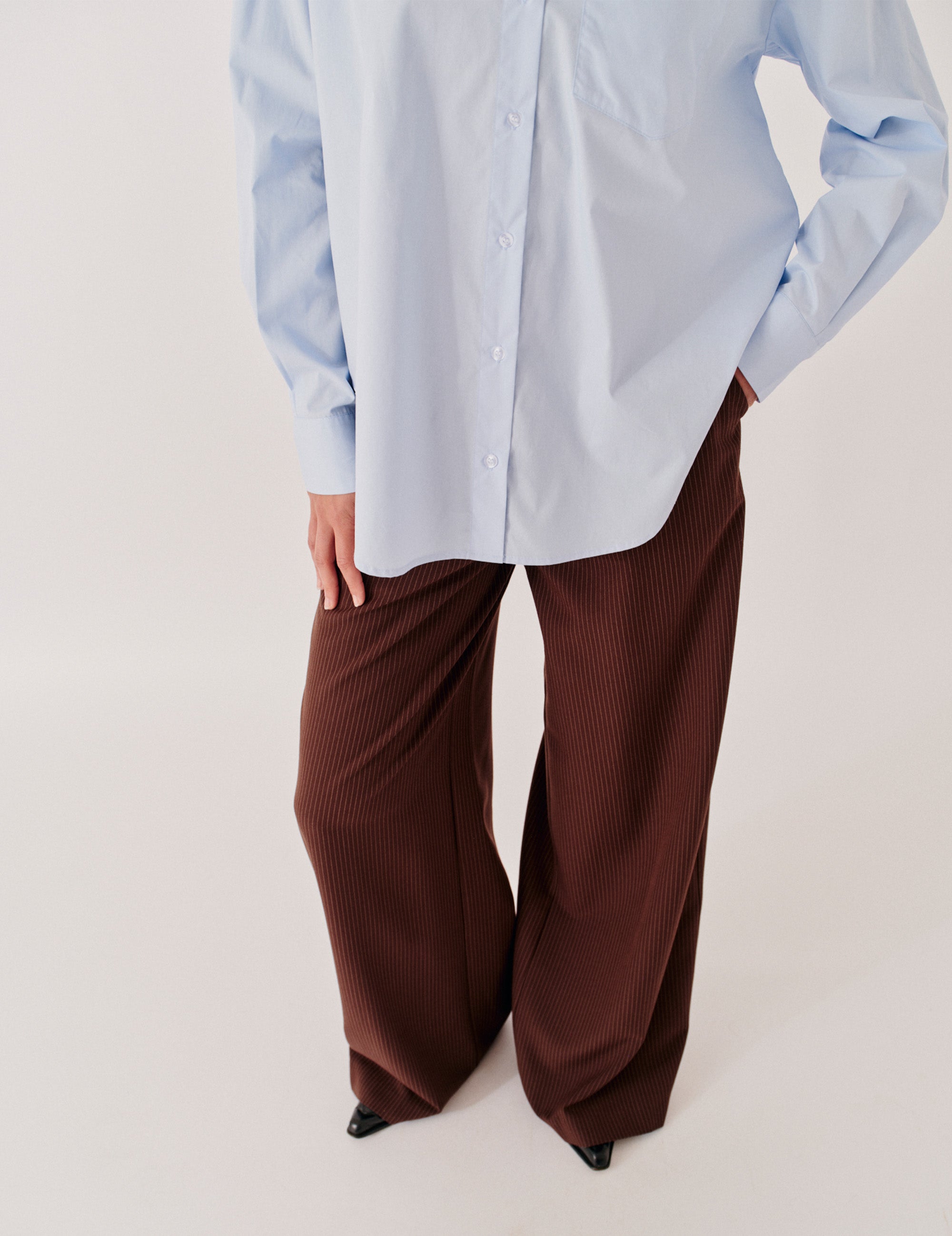 Zelda Wide Pants Brown/Slim White Pinstripes